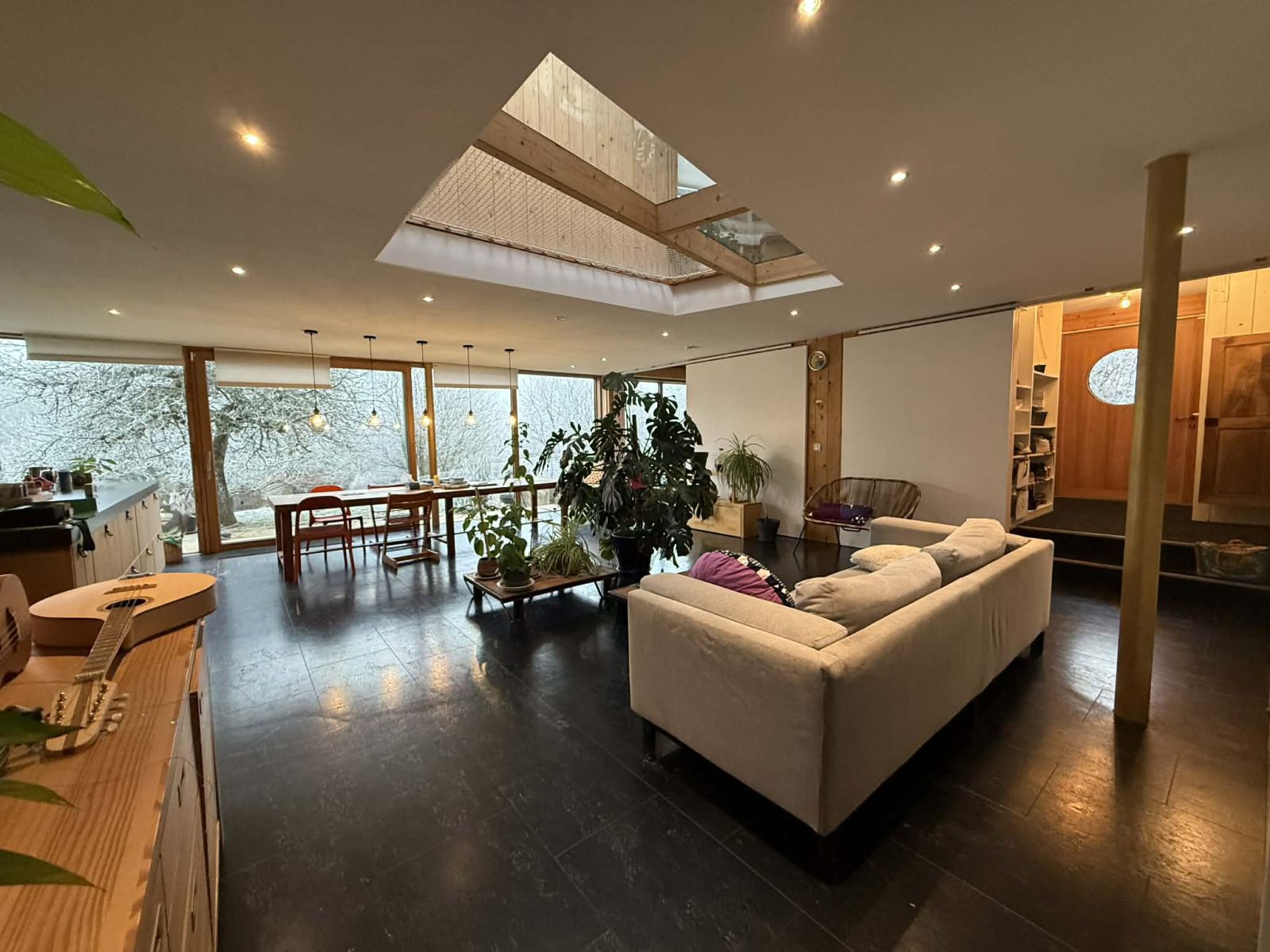 Son architecture épurée et sa luminosité omniprésente font de cette maison un cocon unique, parfaitement intégré à son environnement naturel.