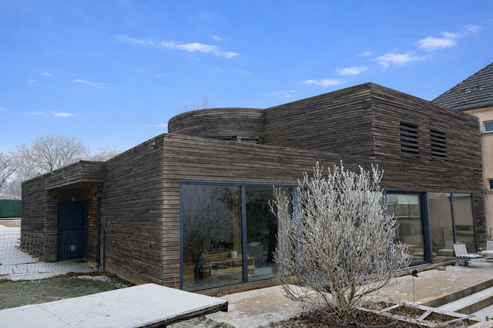Cette maison d’architecte mitoyenne d’un côté, construite en 2015 à Aiglemont, vous séduira par ses volumes impressionnants, ses finitions de qualité et ses équipements à haute performance énergétique.